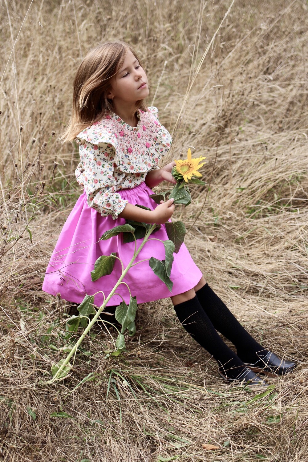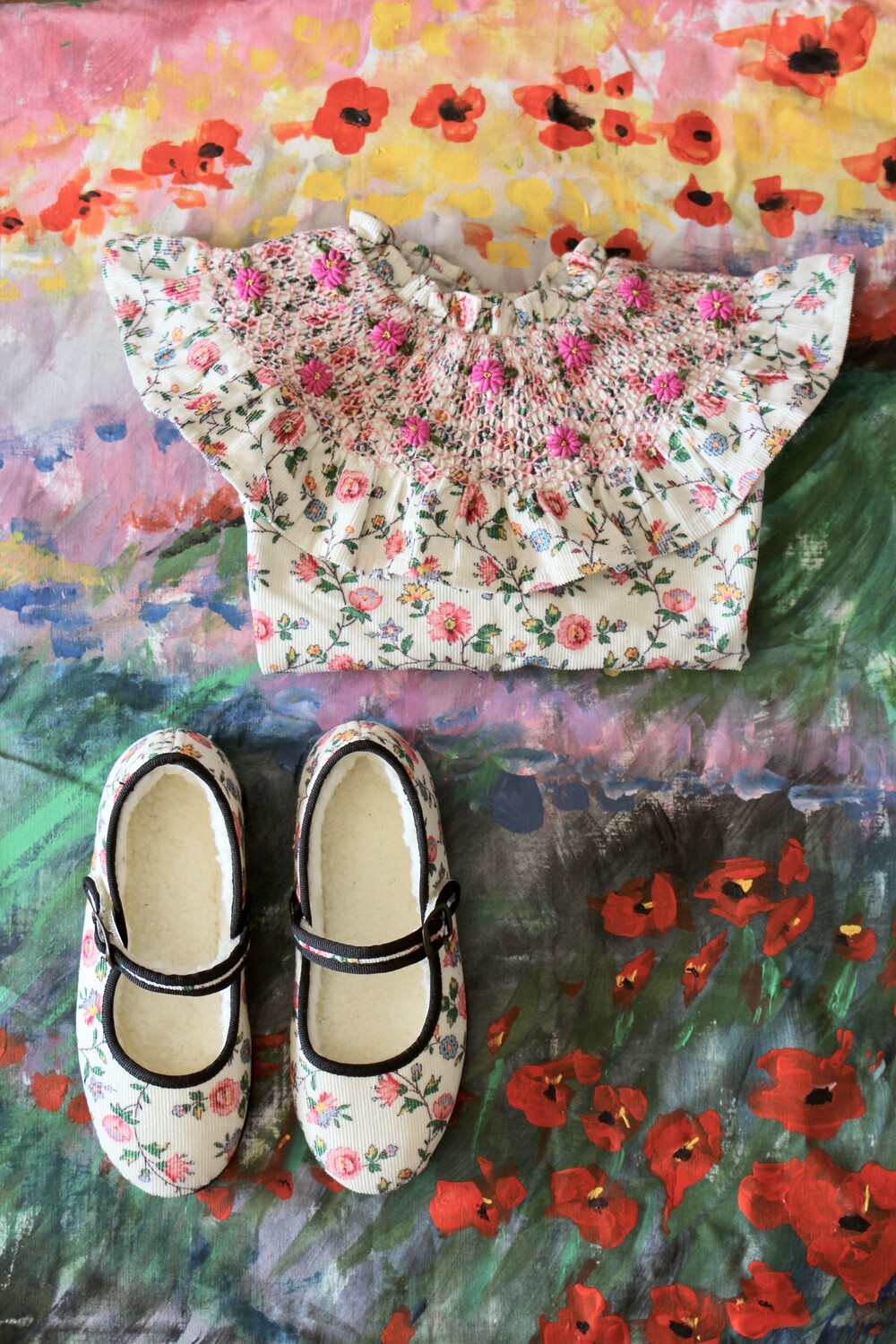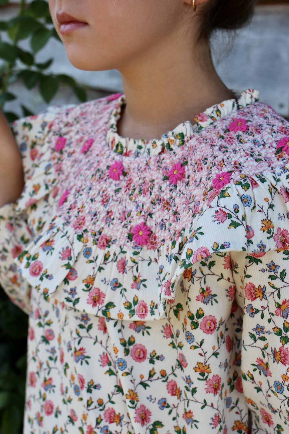 NEW HAND SMOCKS BLOUSE_Ivory flower print_Bonjour