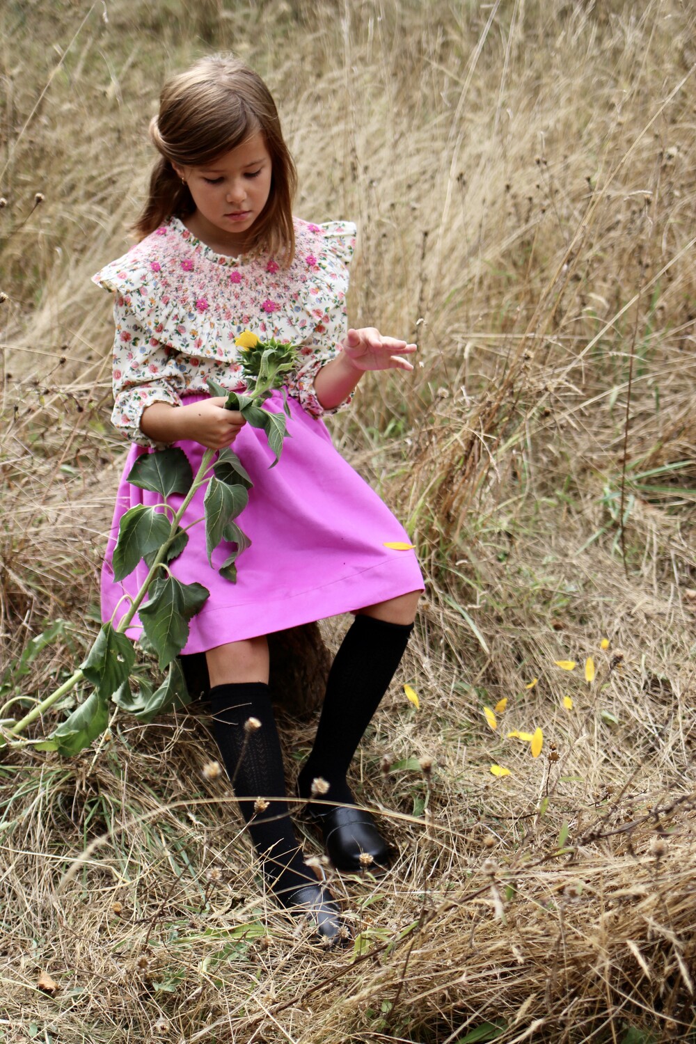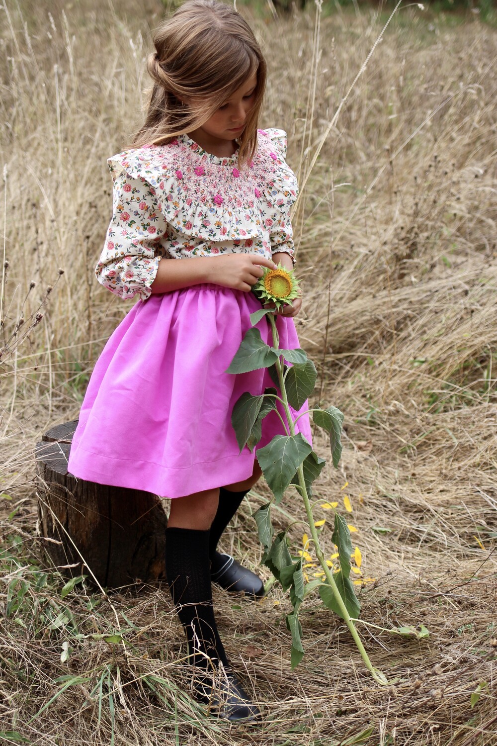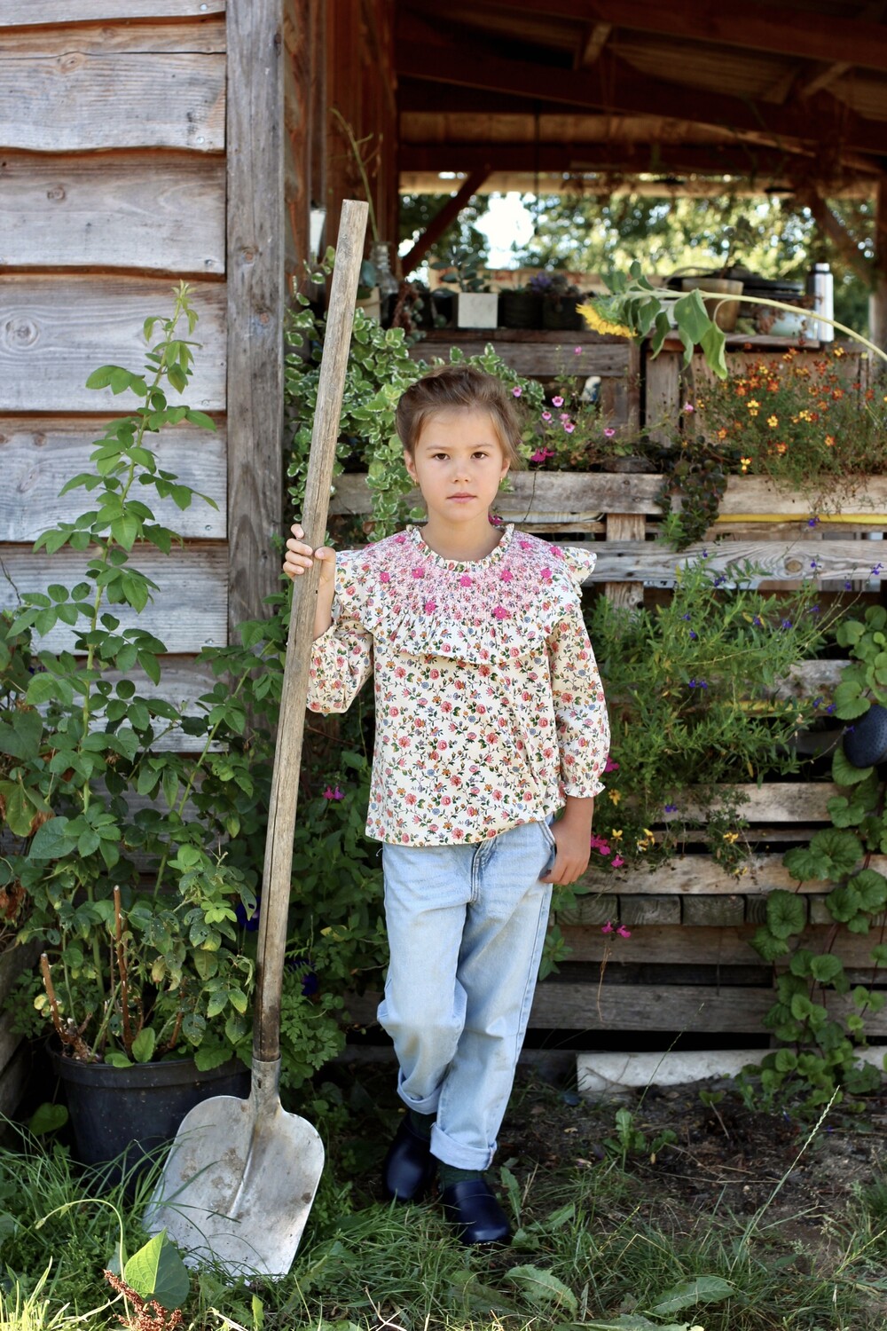 NEW HAND SMOCKS BLOUSE_Ivory flower print_Bonjour