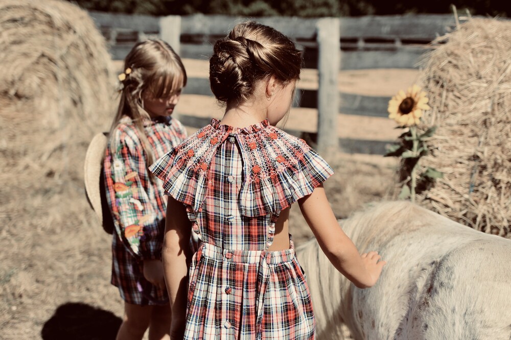 The apron dress and its large handmade smocked collar