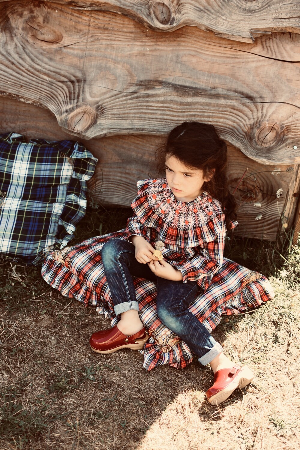 NEW HAND SMOCKS BLOUSE_Red check_Bonjour