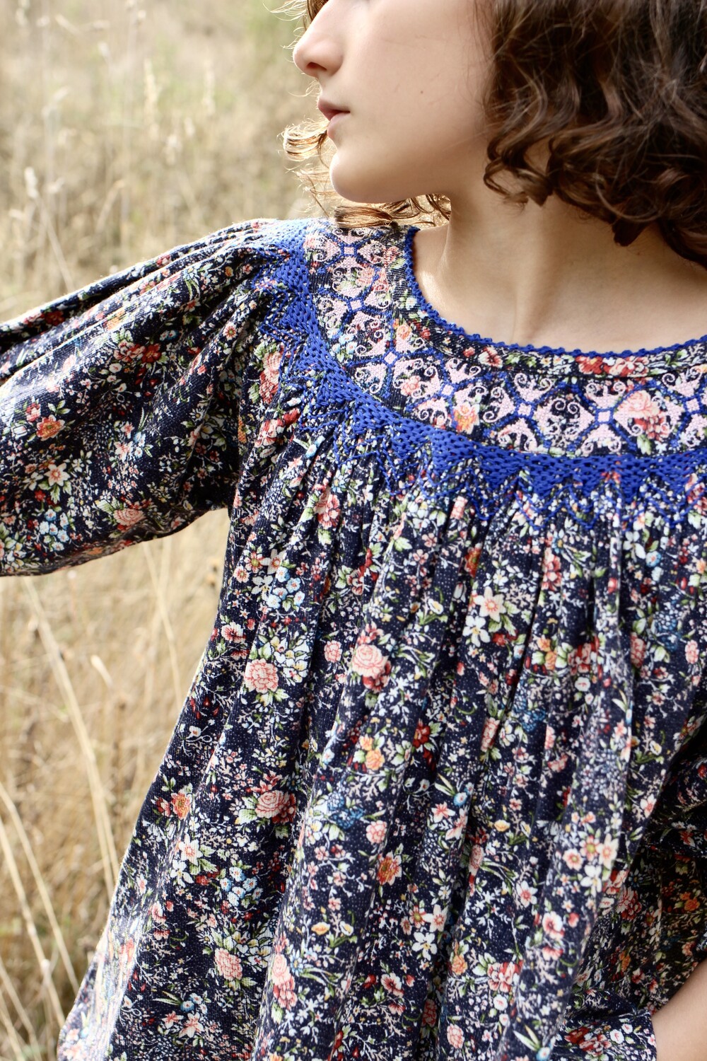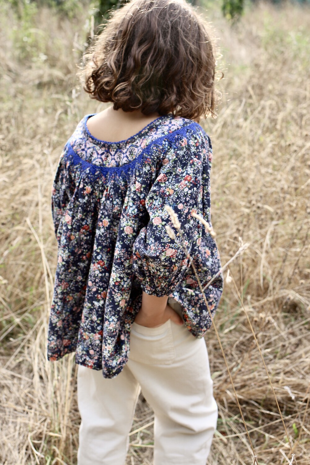 BUTTERFLY BLOUSE_Indigo flowers print_Bonjour