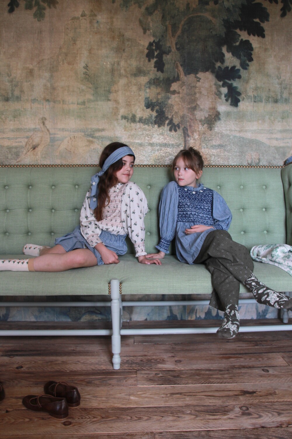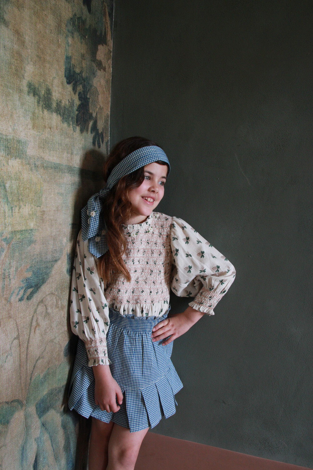PLEATED SKIRT WITH TIE SCARF_Vichy blue-Bonjour