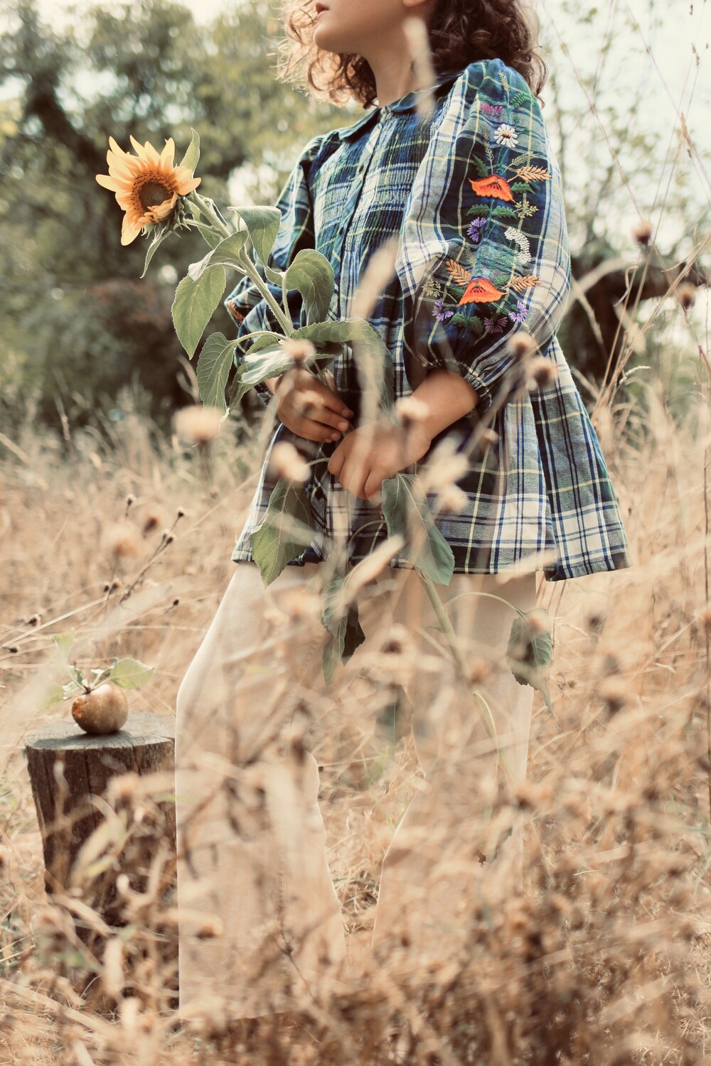 TUNIQUE BLOUSE_Dark green check_Bonjour