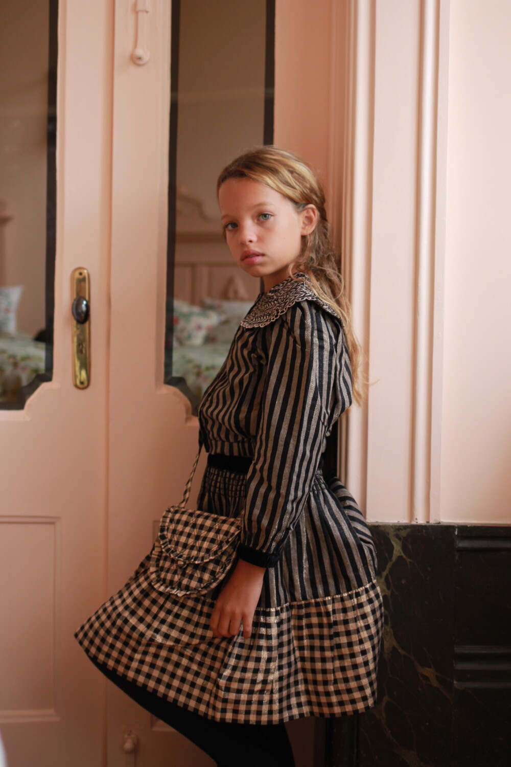 SKIRT WITH HAIR CLIP_Stripe lurex body&hair clip_Bonjour
