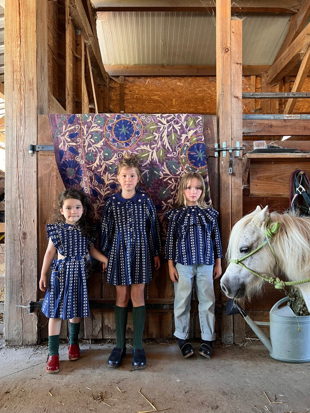 NEW HAND SMOCKS BLOUSE_Indigo flowers_Bonjour