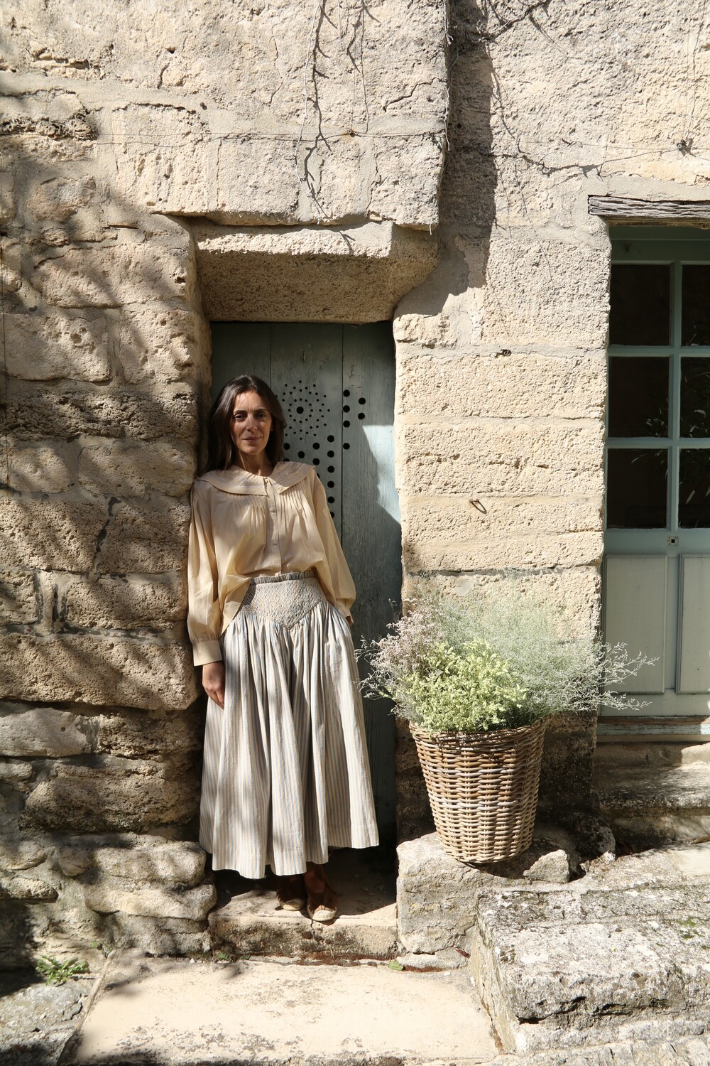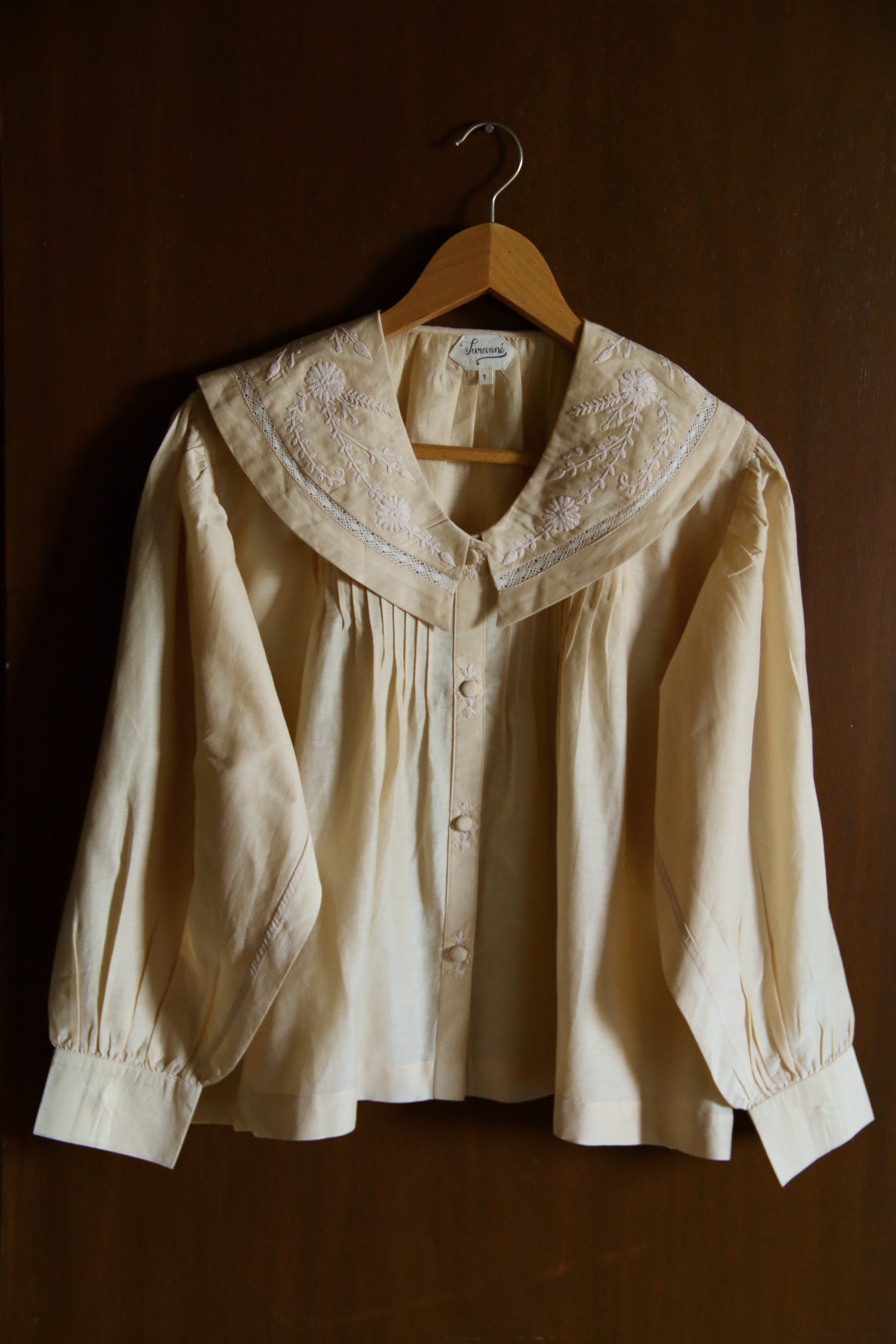 Blouse with sailor collar_Sand cotton silk_Suranné