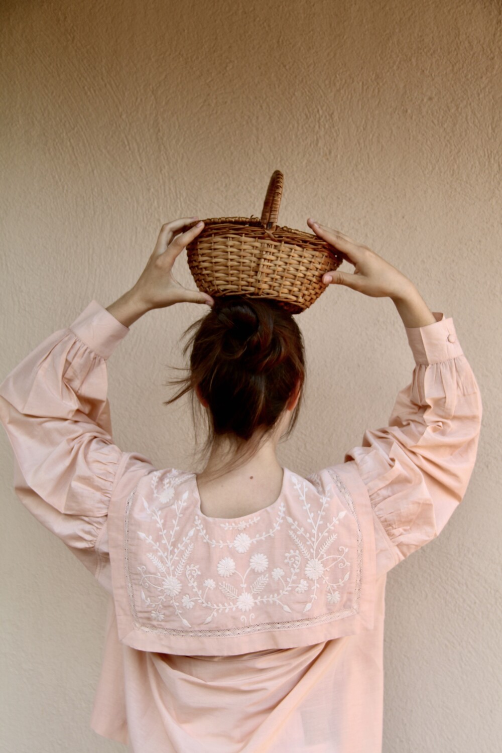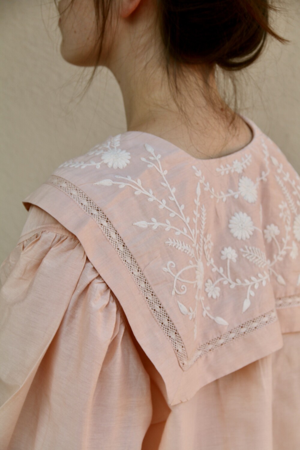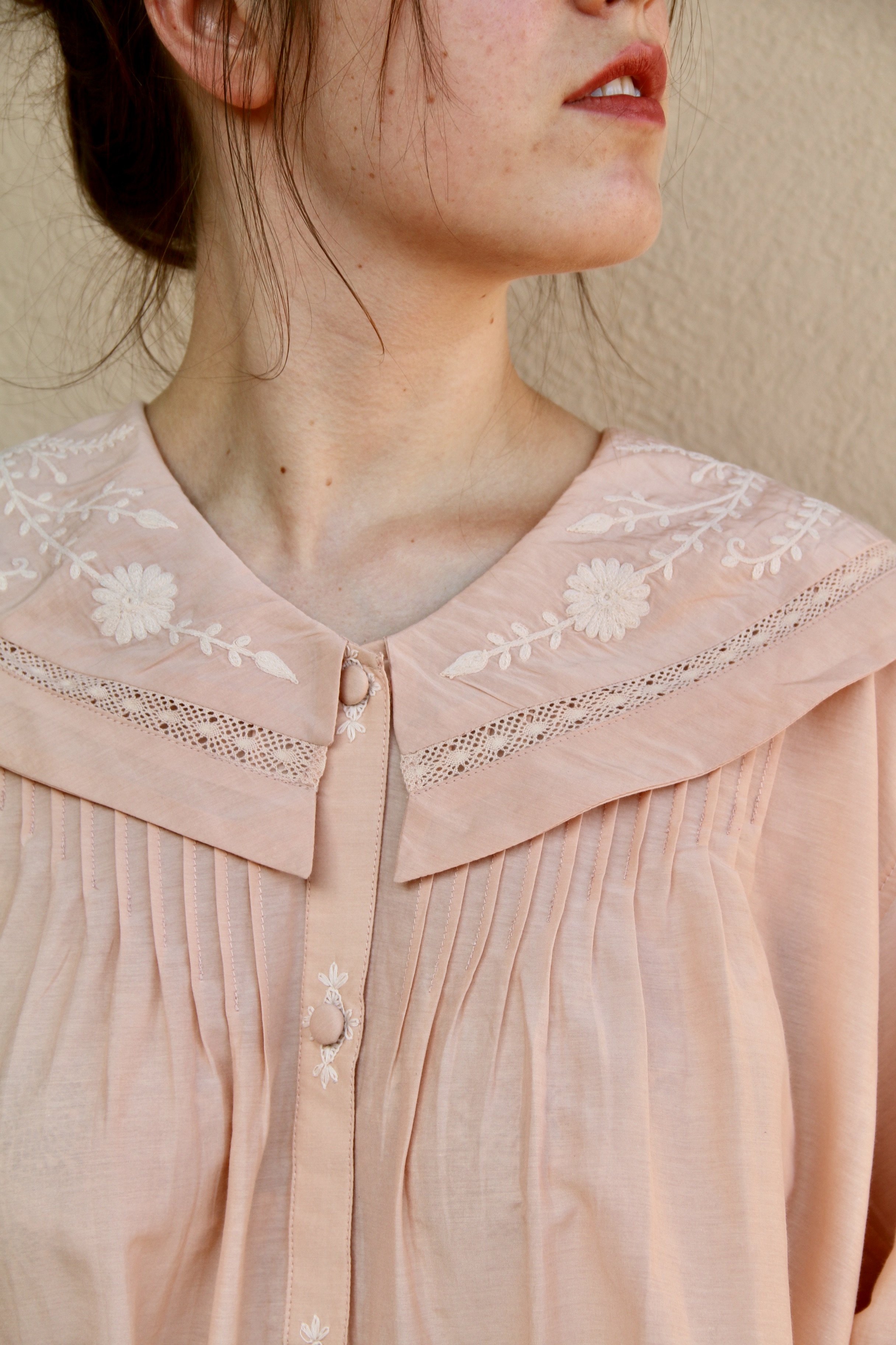 Blouse with sailor collar_Pink cotton silk _Suranné
