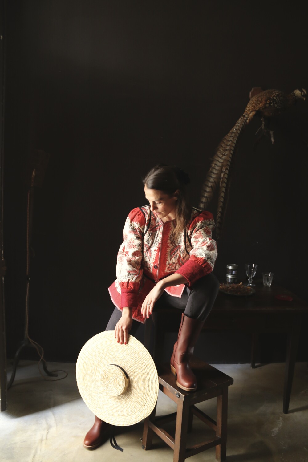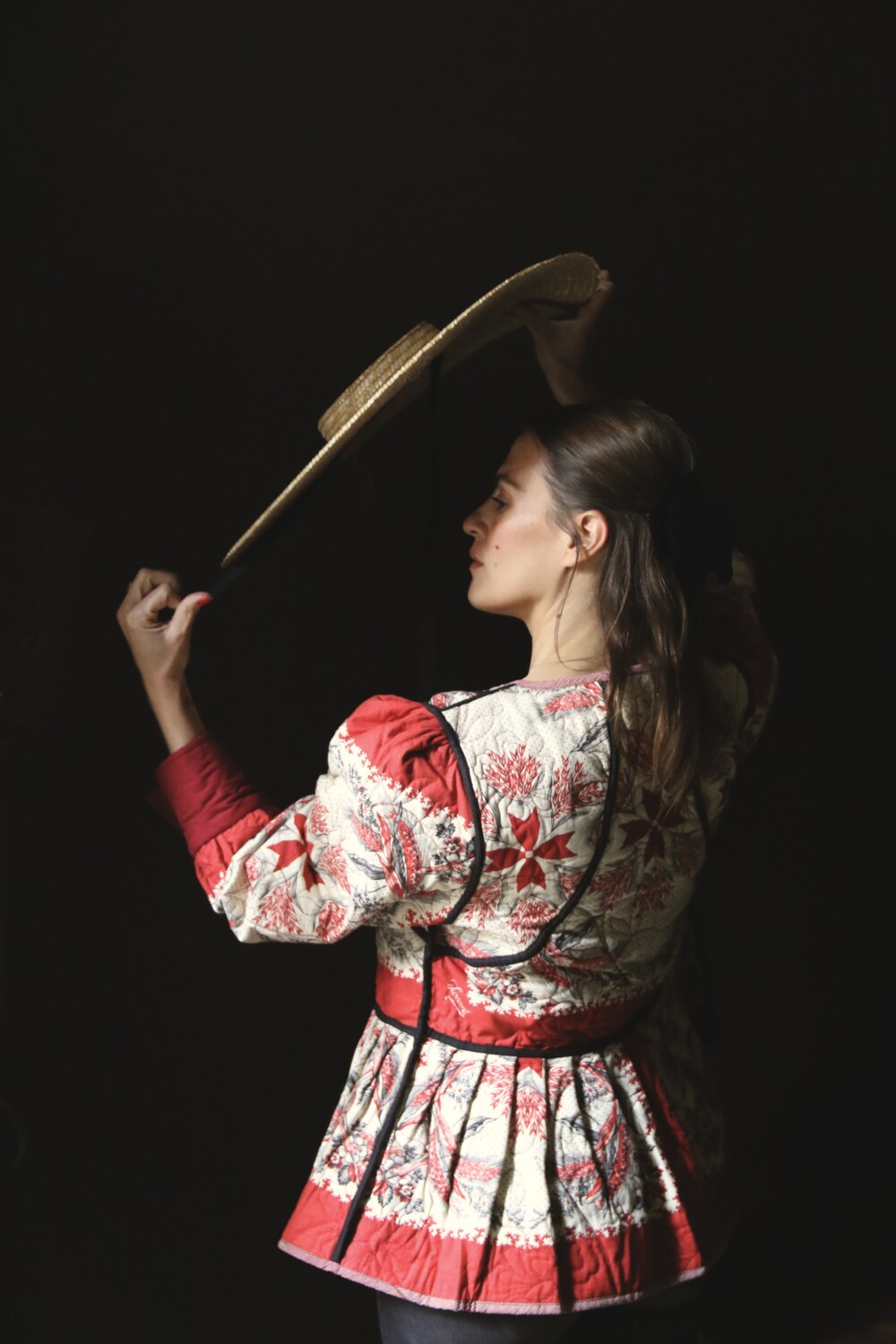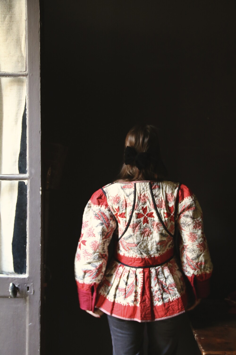 Quilted jacket _Solid red wine / Bandana wheat ears print_Suranné