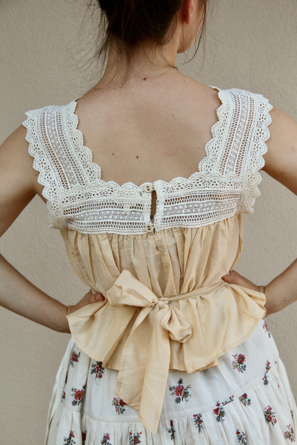 Top with lace_ Sand cotton silk _Suranné