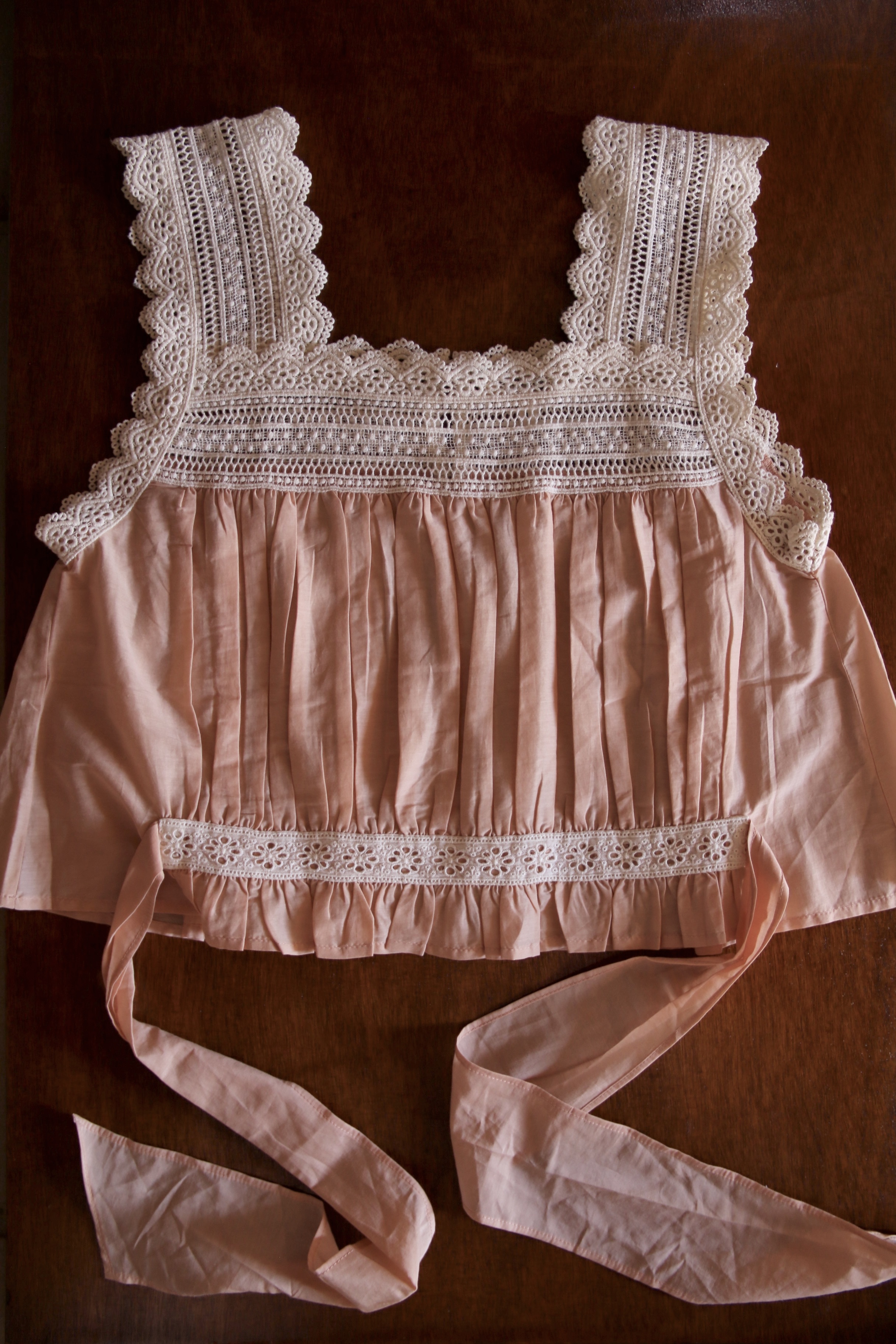 Top with lace _Pink cotton silk _Suranné