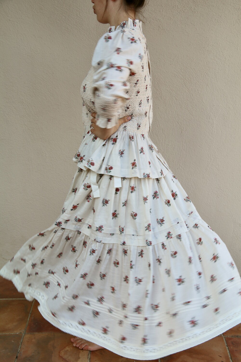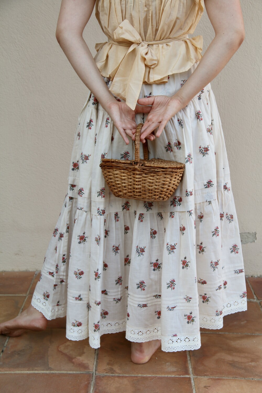 "Anemone" skirt_ Garden print organic slub voile _Suranné