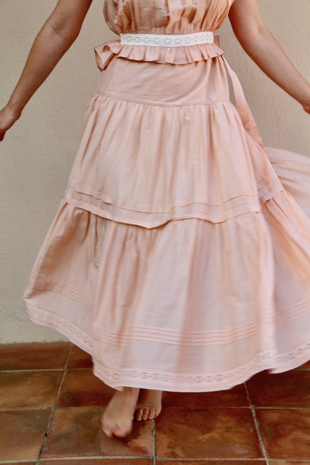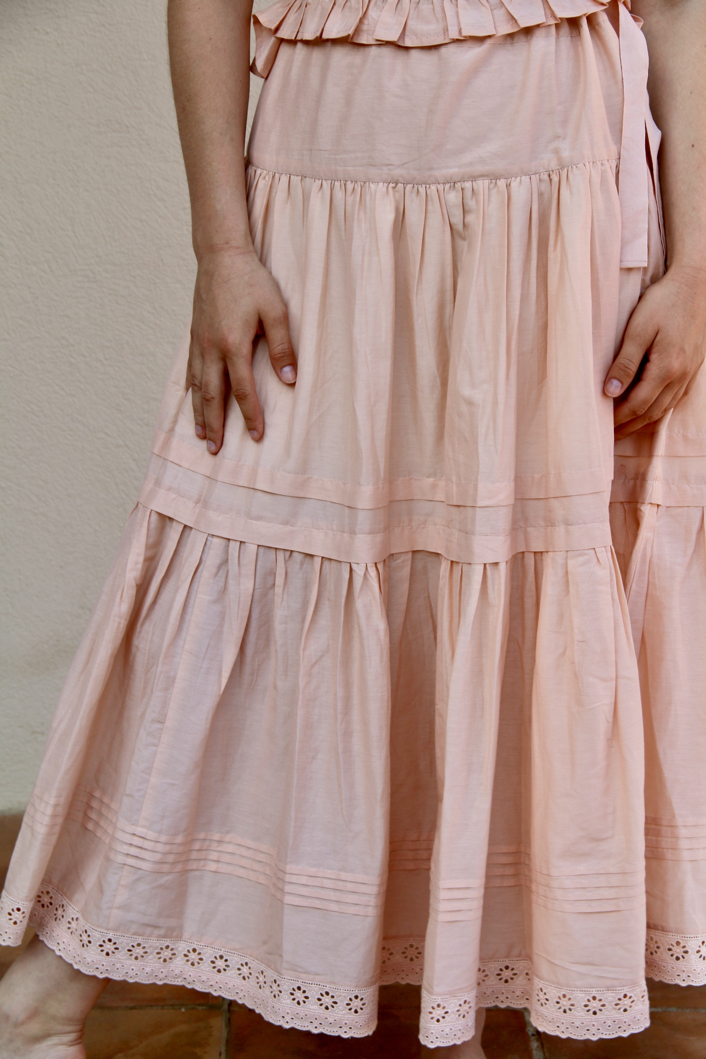 "Anemone" skirt _Pink cotton silk _Suranné