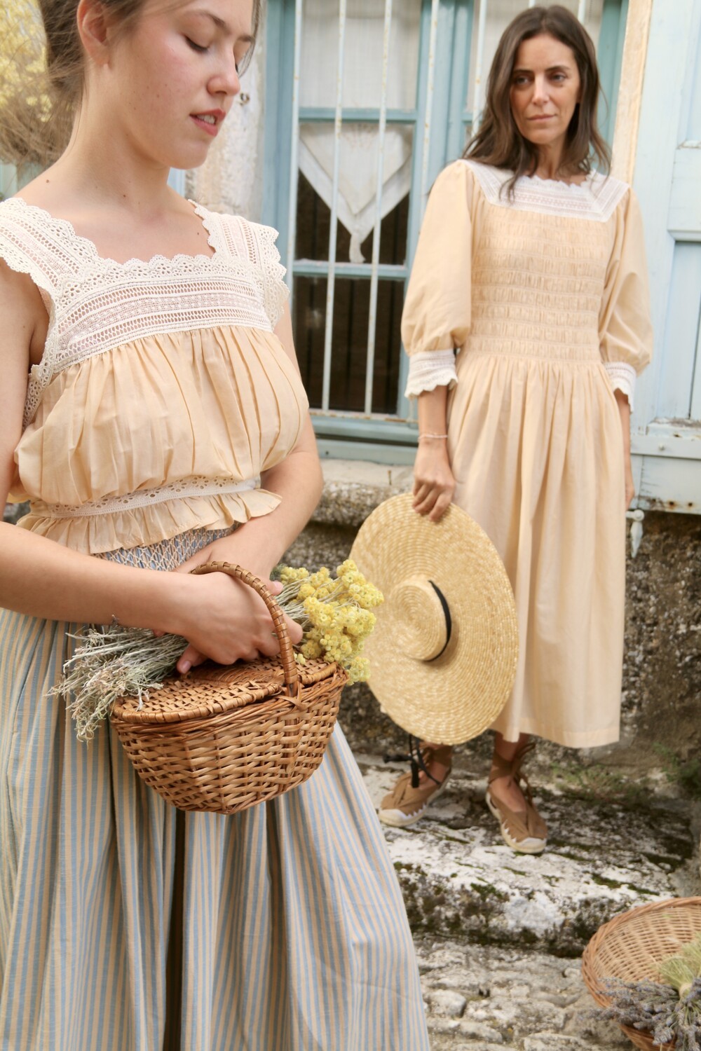해당 제품은 인도의 전통 블록 프린팅 기법으로 제작된 원단을 사용하여, 기계가 아닌 아티잔의 손길로 완성됩니다.