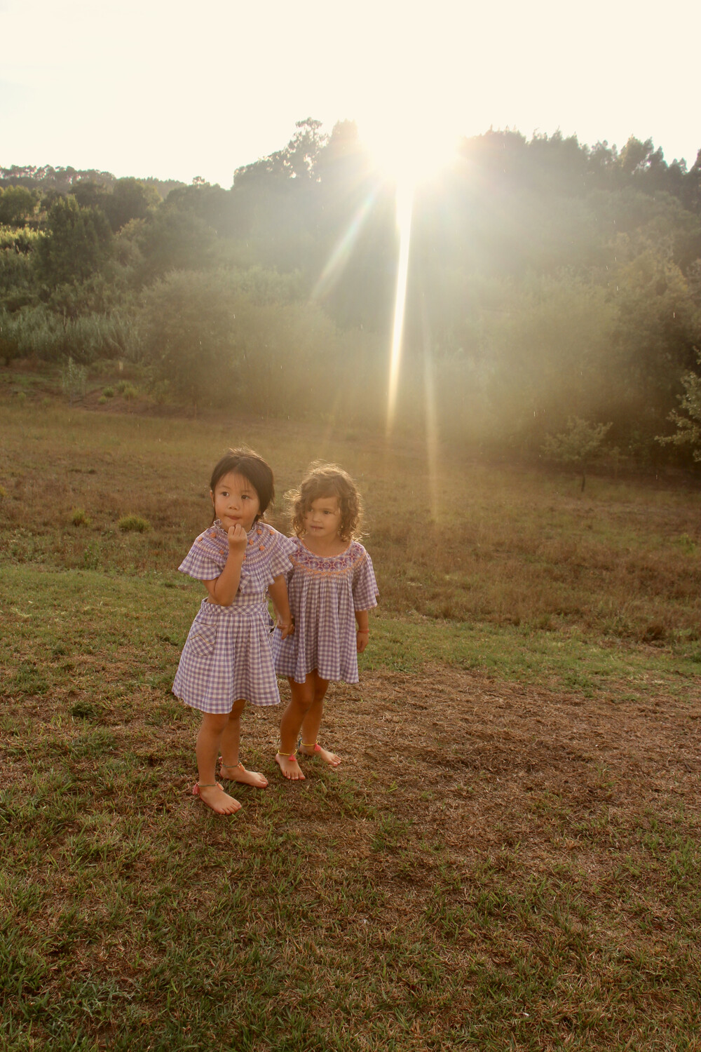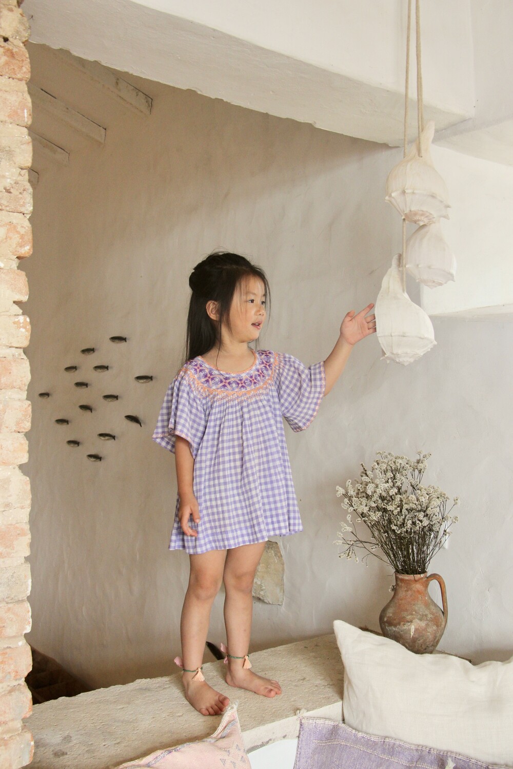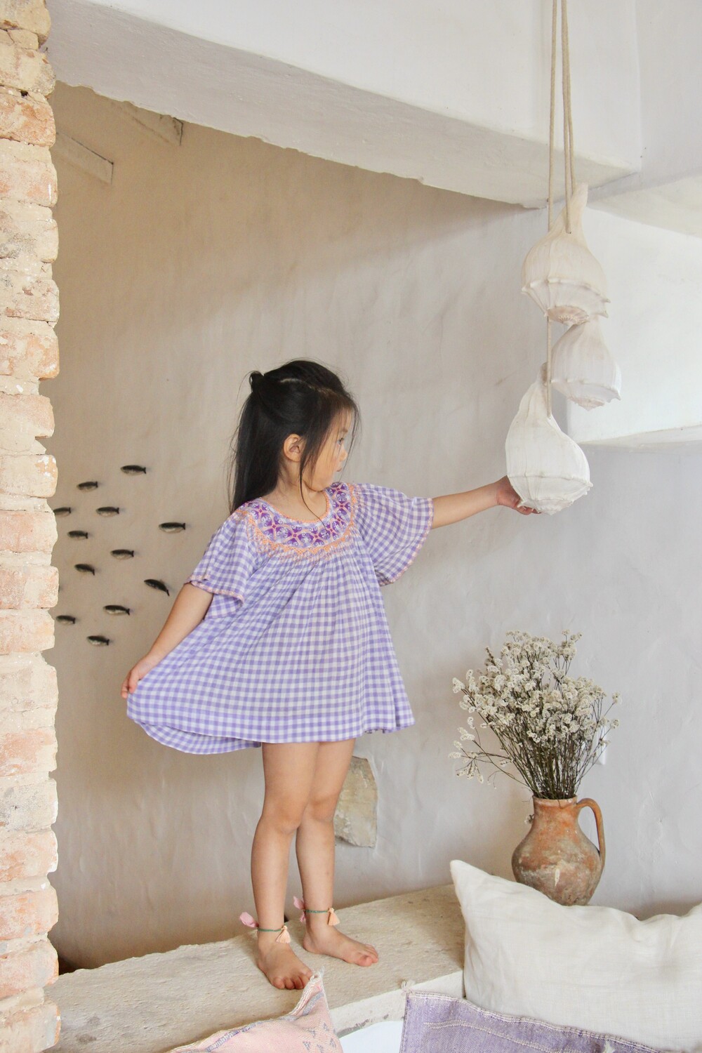 Butterfly Blouse with cross embroidery_Violet Gingham_Bonjour