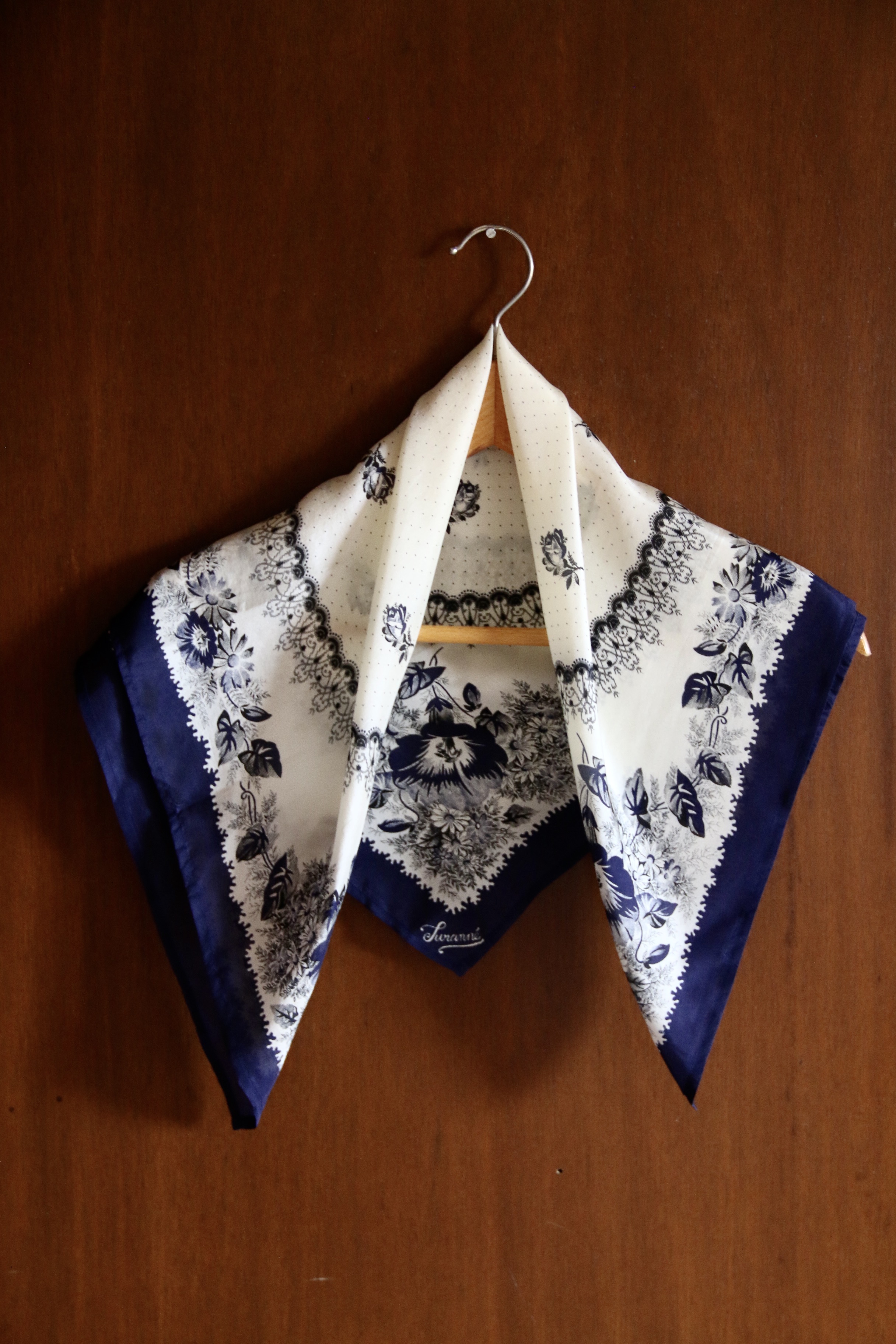 Poppies bandana in pouch Navy blue "Poppies" print silk _Suranné