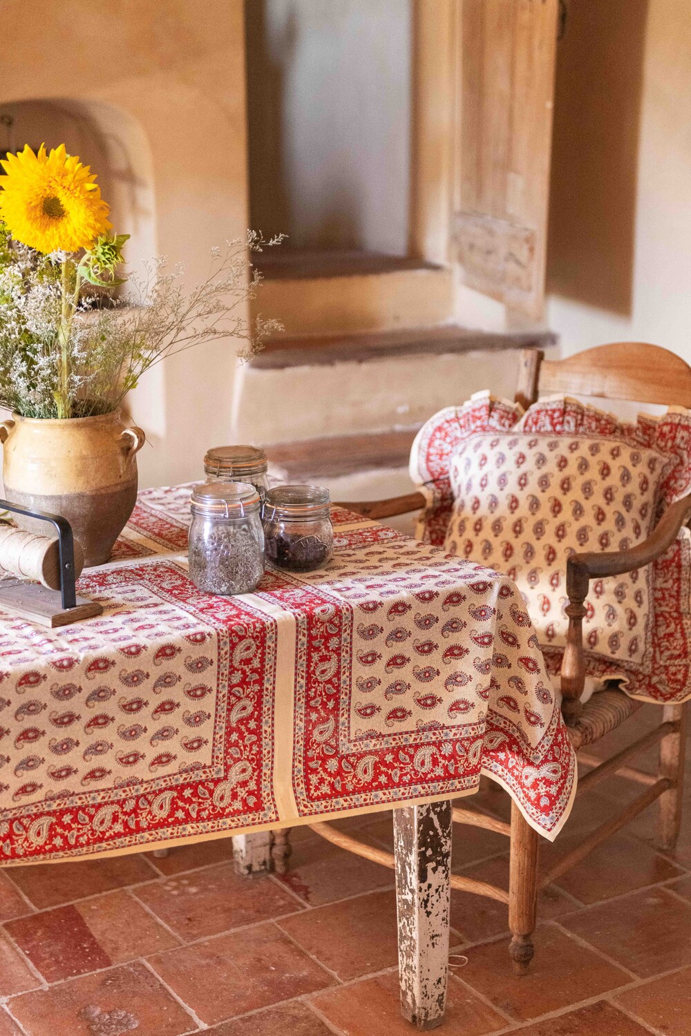 Table cloth Cashmere bandana print _Vanilla dyed cotton flex_Suranné