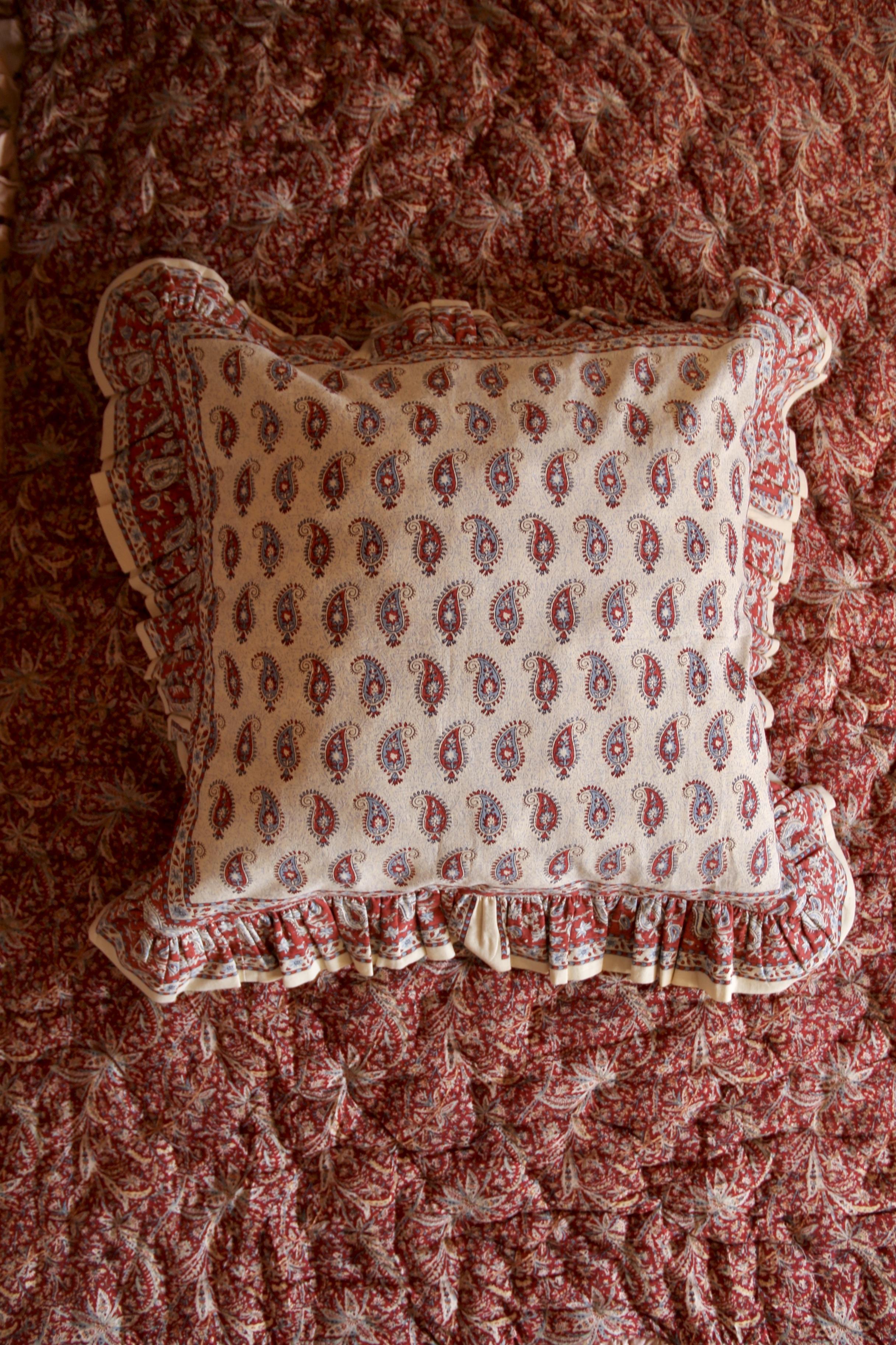 Pillow case with flounce Cashmere bandana print Vanilla dyed_Suranné
