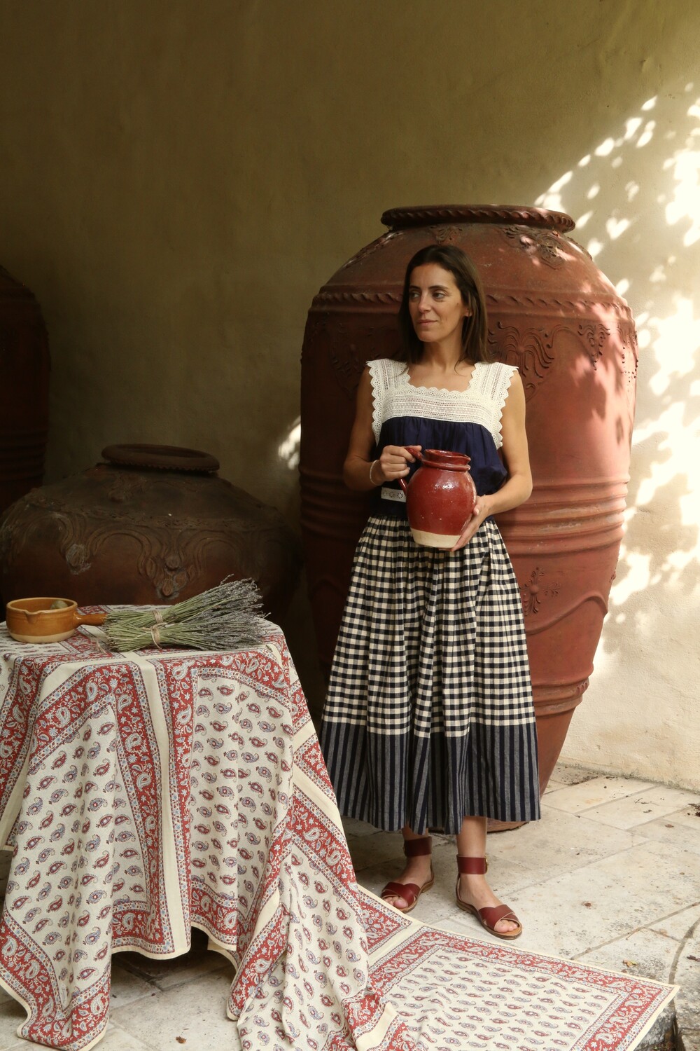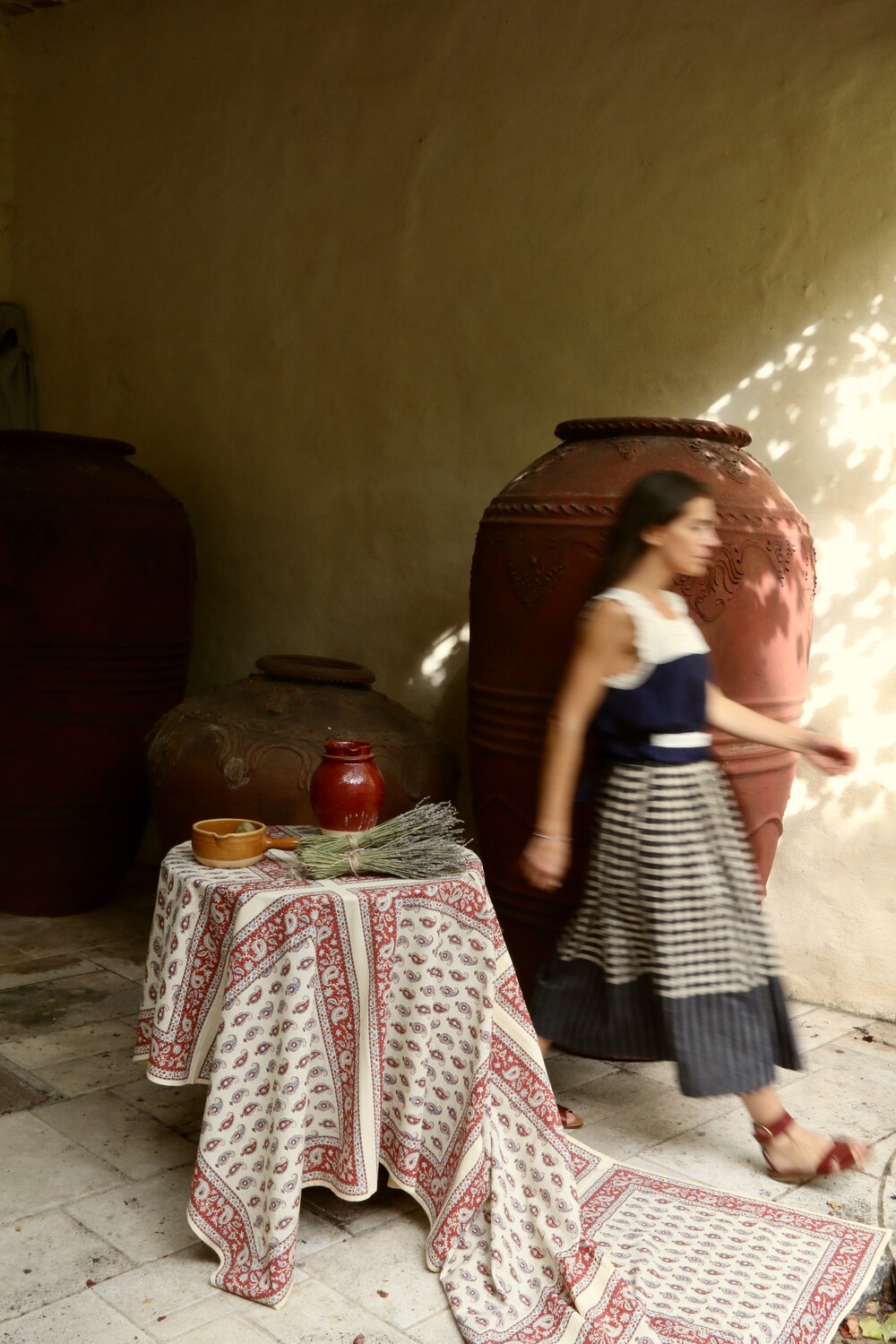해당 제품은 인도의 전통 블록 프린팅 기법으로 제작된 원단을 사용하여, 기계가 아닌 아티잔의 손길로 완성됩니다.