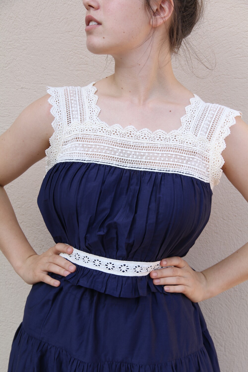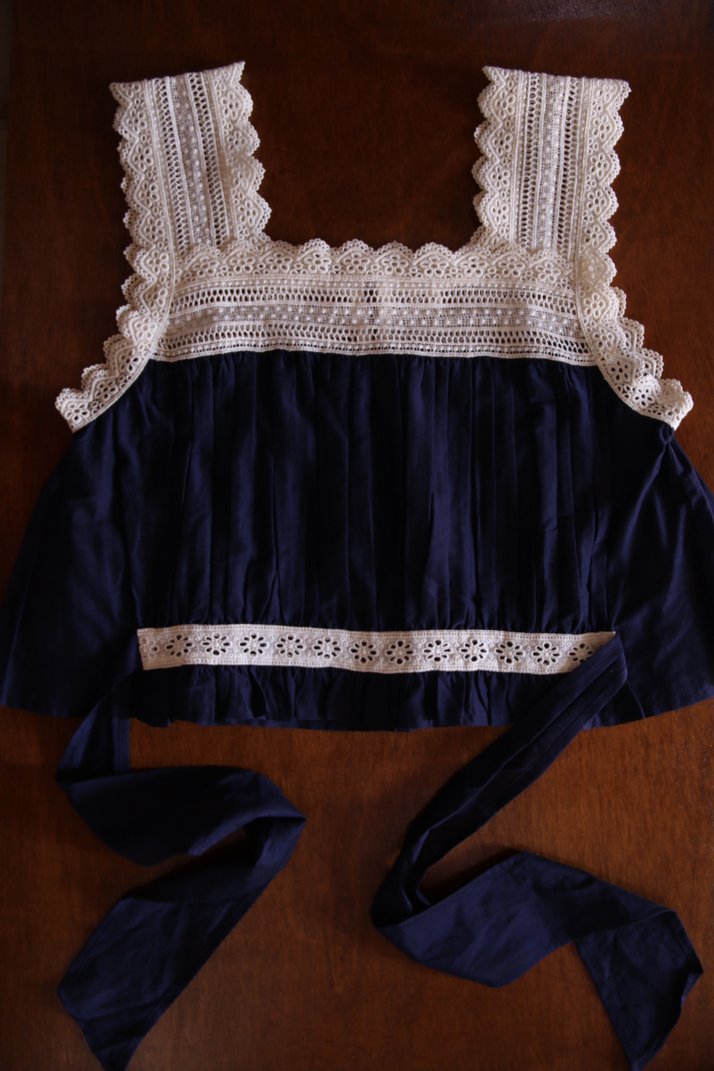 Top with lace _Dark navy cotton silk _Suranné