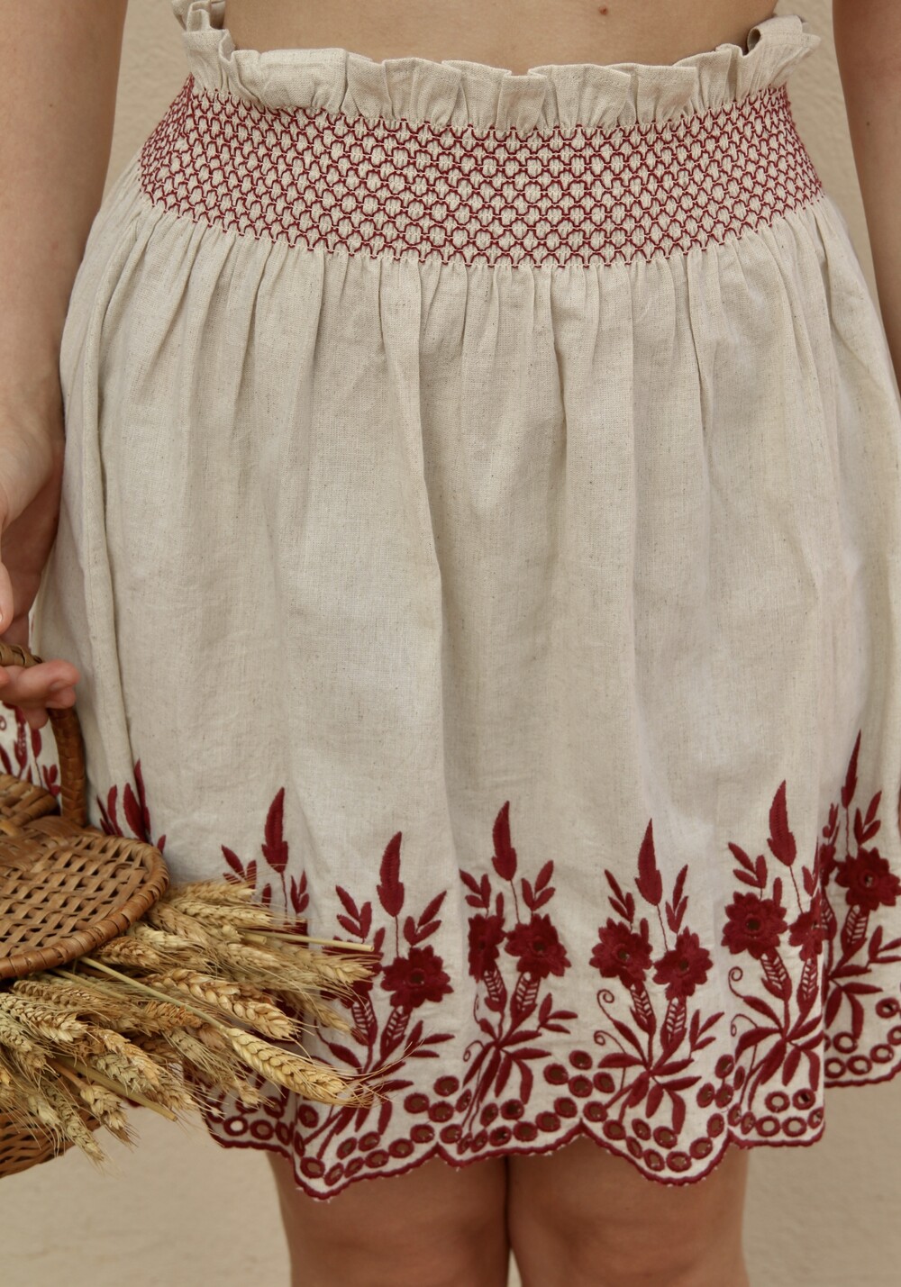 Women short skirt emb. eyelet fabric in natural cotton flex fabric_Suranné