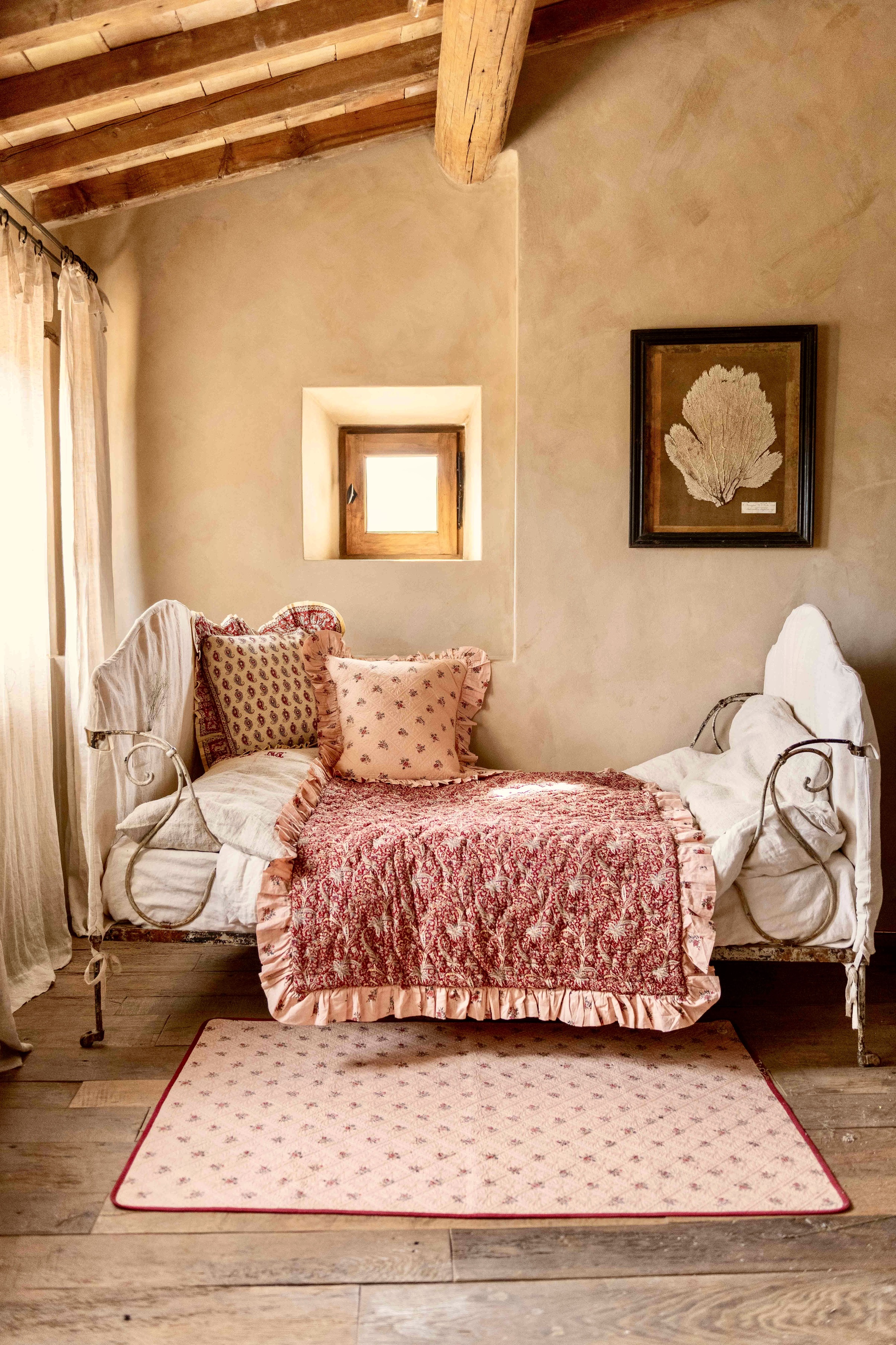 Quilted carpet with floral quilting Pink garden flower print_Suranné
