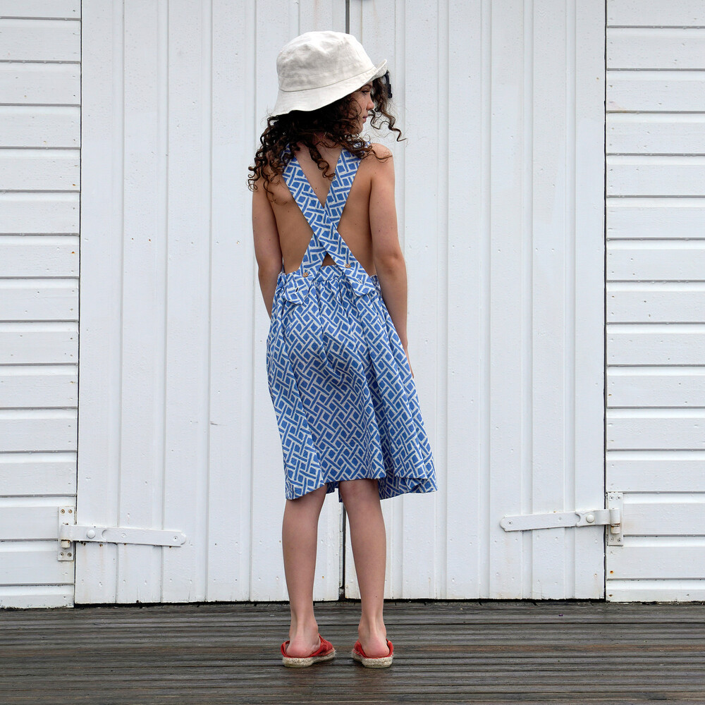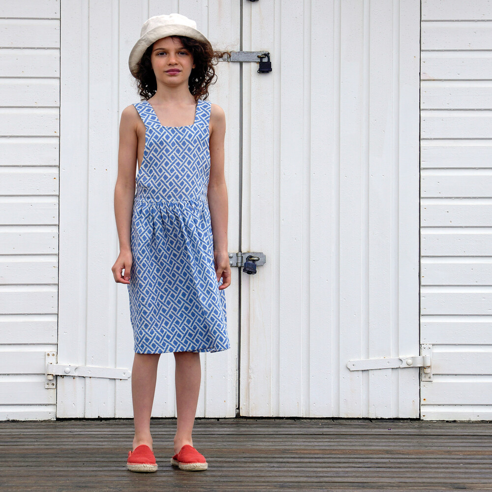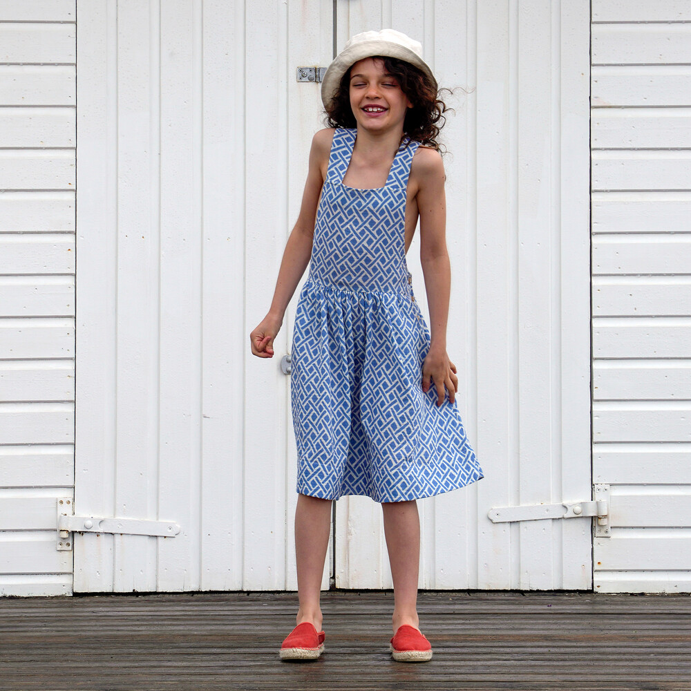 Easily, your child's new favourite dress. The Lupita Dress is simply divine. She'll love the swishy skirt that's enhanced by the weight of the organic linen, you'll love the buttons at the side for easy dressing. The front bib provides sufficient coverage without a top underneath, but when it's cooler, this dress is equally lovely layered over a blouse. 100% organic linen and printed cotton voile.